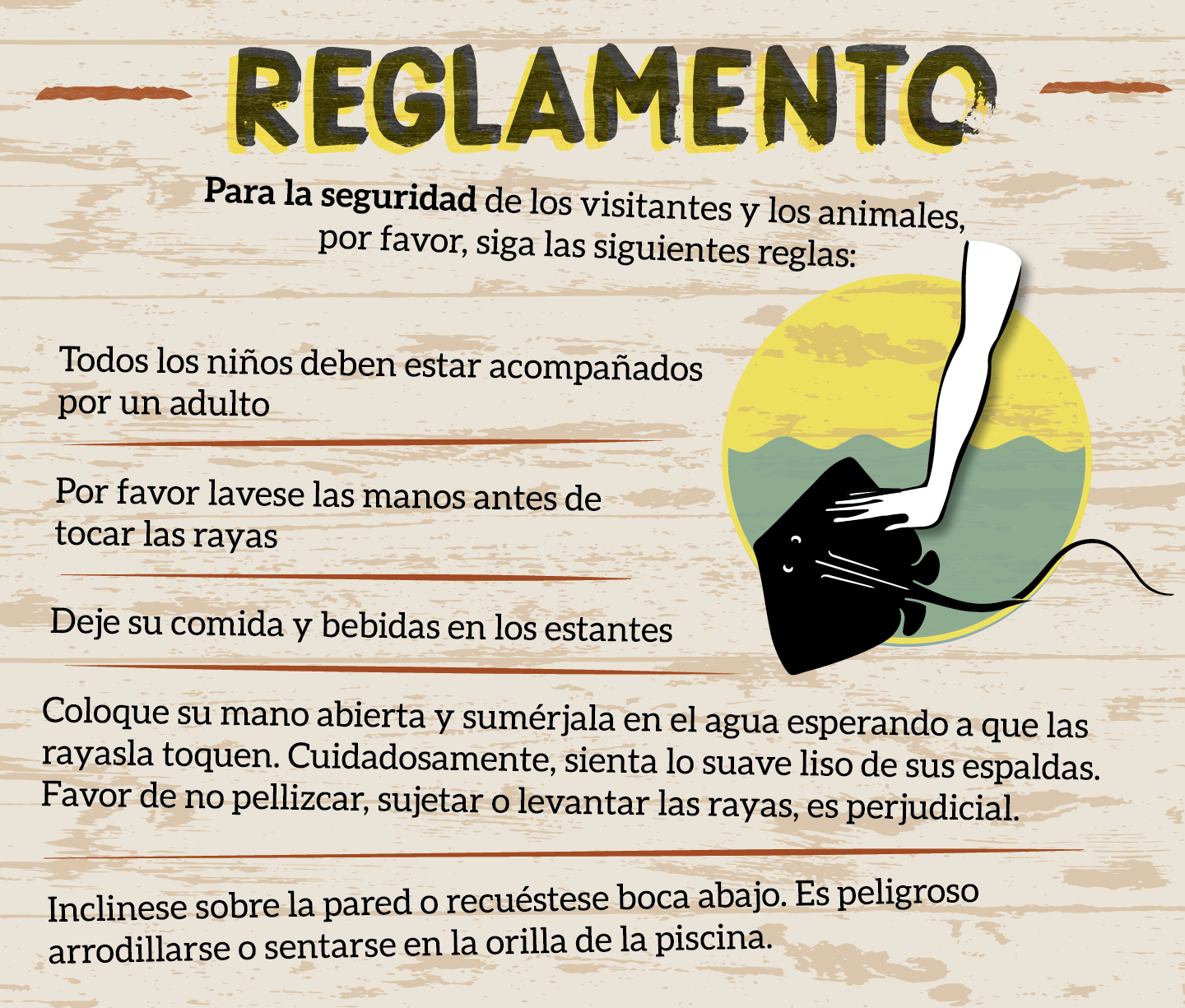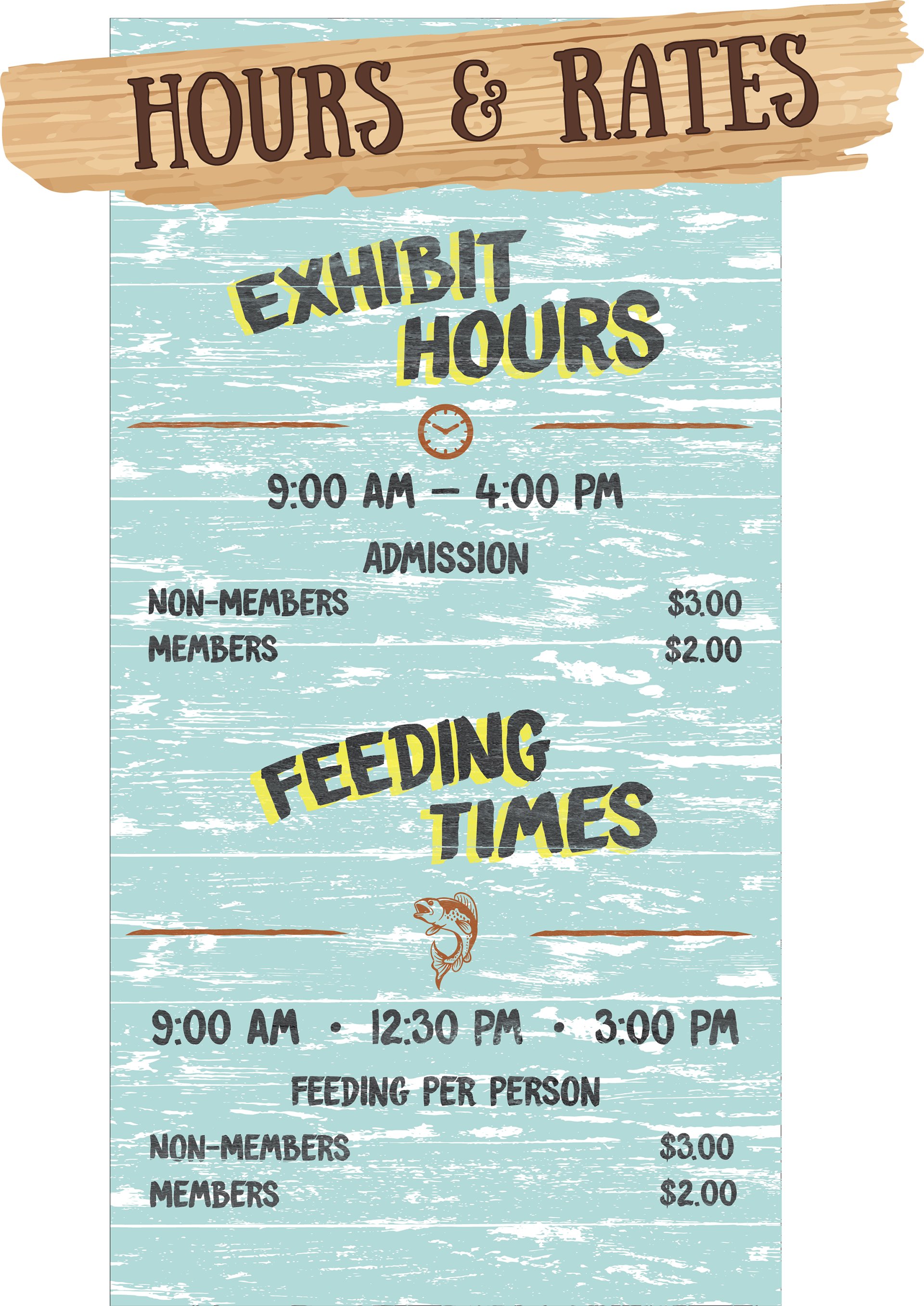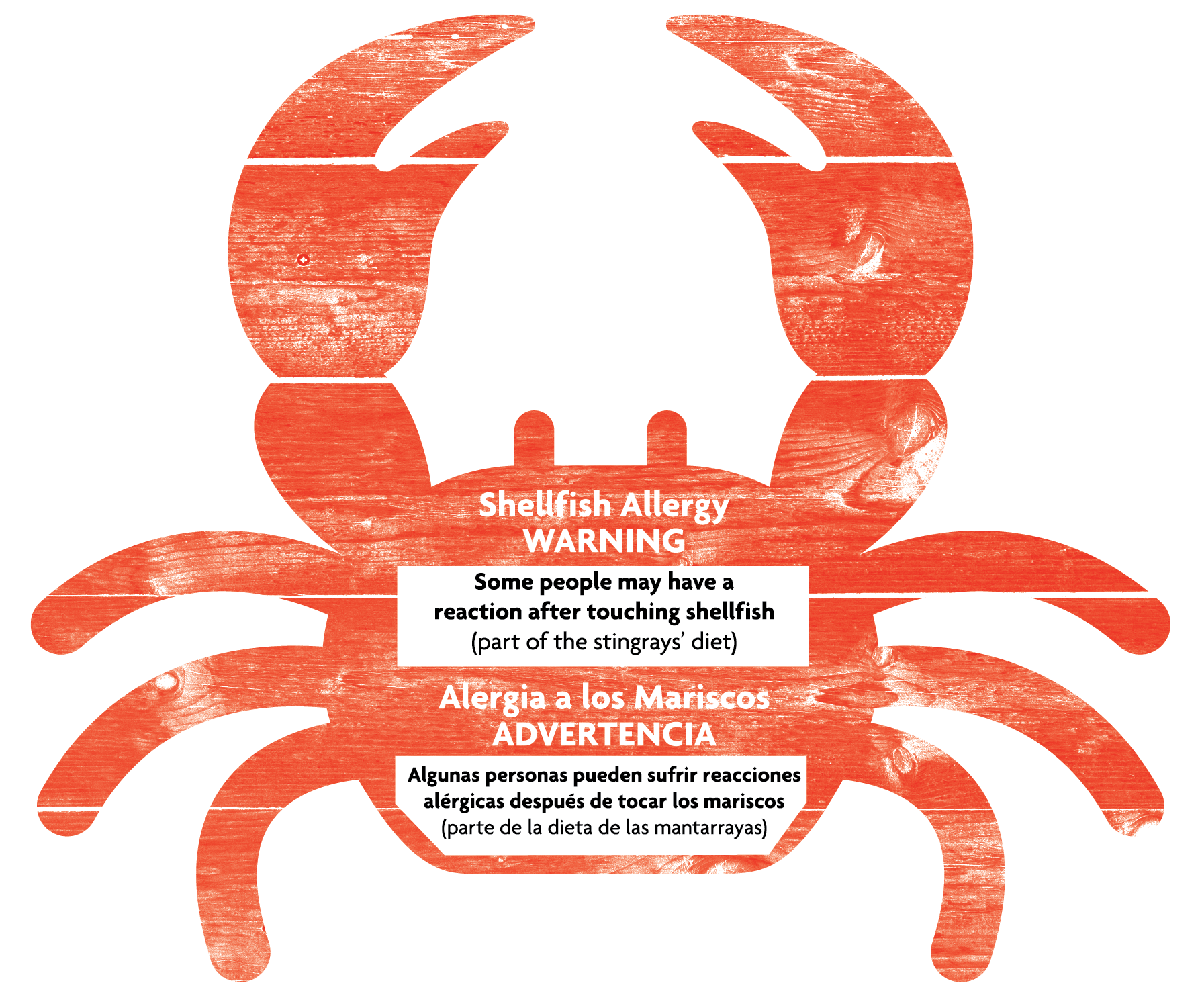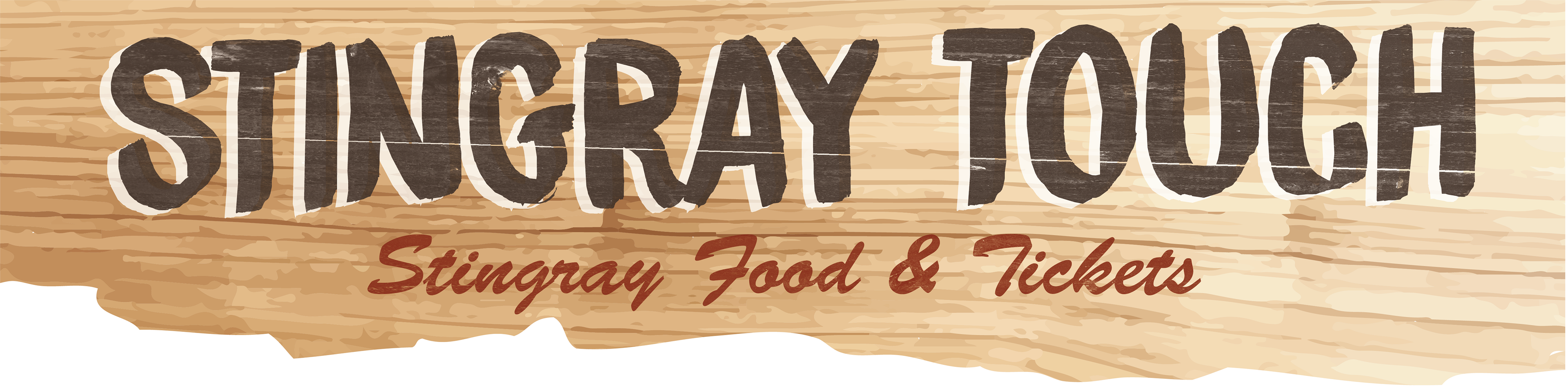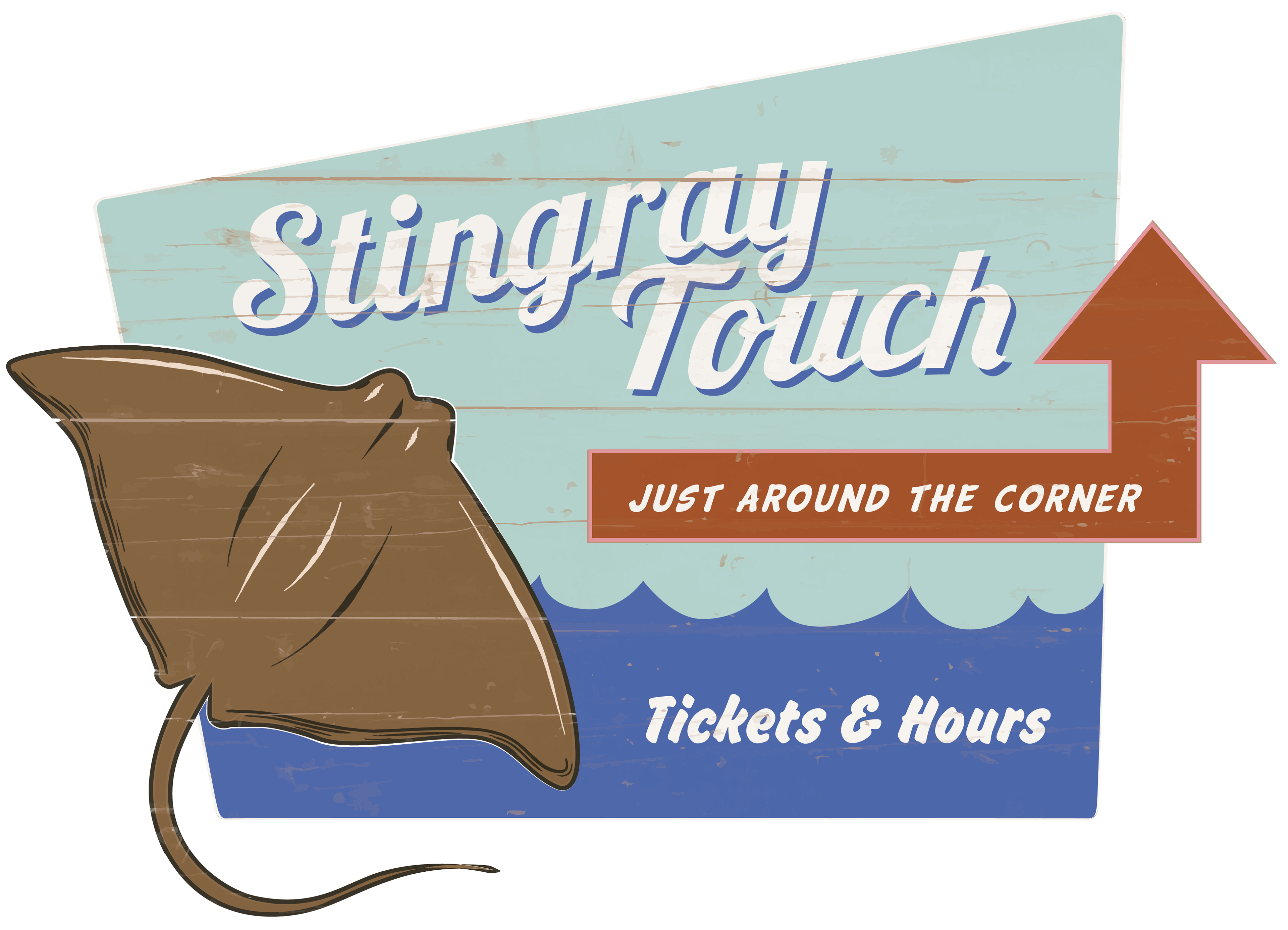 About: Signage for Stingray Touch exhibit ticket booth that resembles a bait shack you might see on a beach front.