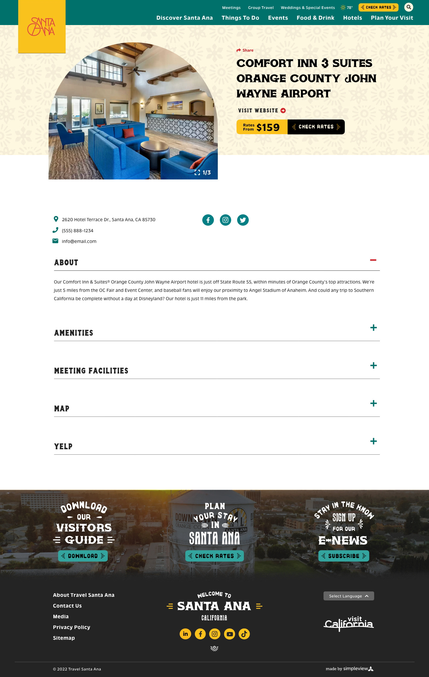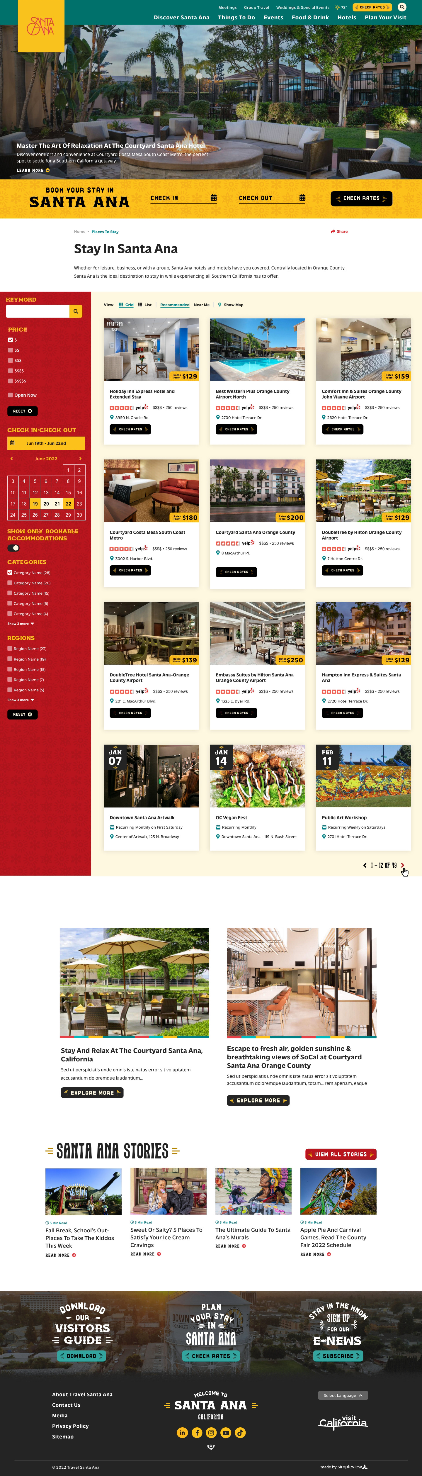 The custom designed collections are adaptable to any of Travel Santa Ana's dynamic content and can be placed on any page.