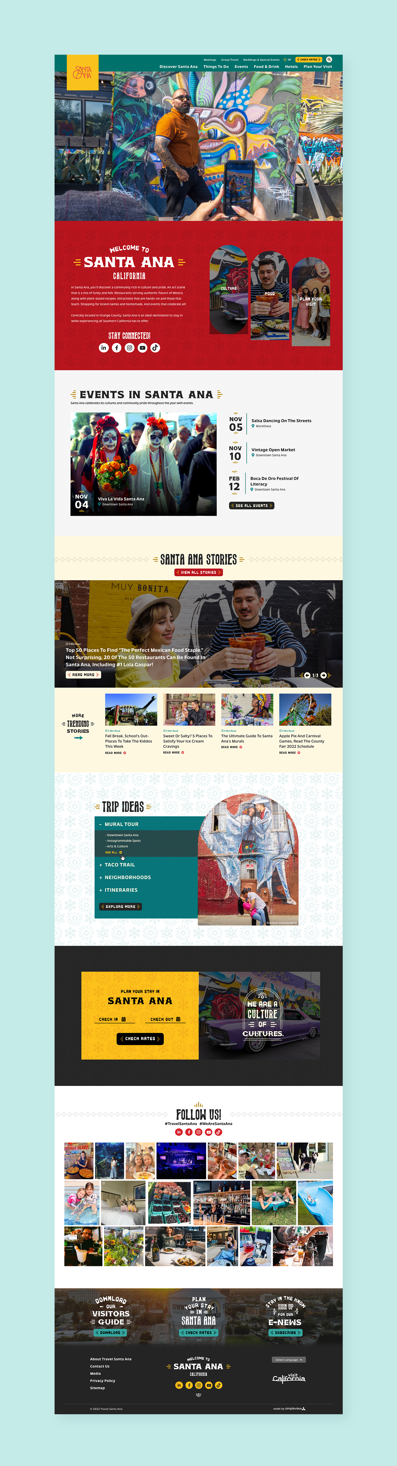 Travel Santa Ana is the official Destination Marketing Organization (DMO) for Santa Ana, California. My role was to design a website that captured the vibrant culture and pride of the community. I designed custom collections and widgets that highlight the vibrant art scene, diverse restaurants options, and unique attractions so users will get inspired to book a stay in Santa Ana, CA.